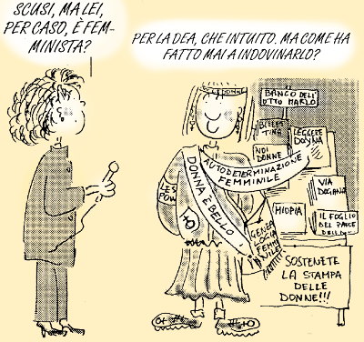 E’ grave, dottore?! E a voi, riuscirebbe d’esser calme e chiare? Vi riesce?! Come fate?! Me lo insegnereste? C’è qualcuna di noi miopiste che in una paginetta come questa sa riassumere circa trent’anni di passione femminista? Questa è una provocazione ed un concorso politico-letterario che non prevede né premi né men che meno classifiche. Ed io lascio il mio indirizzo in redazione nella speranza che Elena mi possa spedire un malloppetto di deliziose letterine donnesche, alle quali risponderei con la massima gratitudine. Il concorso è aperto a tutte e le domande sono: