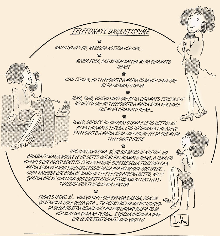 Vengono presentate come telefonate banali, chiacchiere da donne insomma. Un “bla...bla...bla” nel fumetto basta a definirle: un rumore inutile, perdita di tempo.